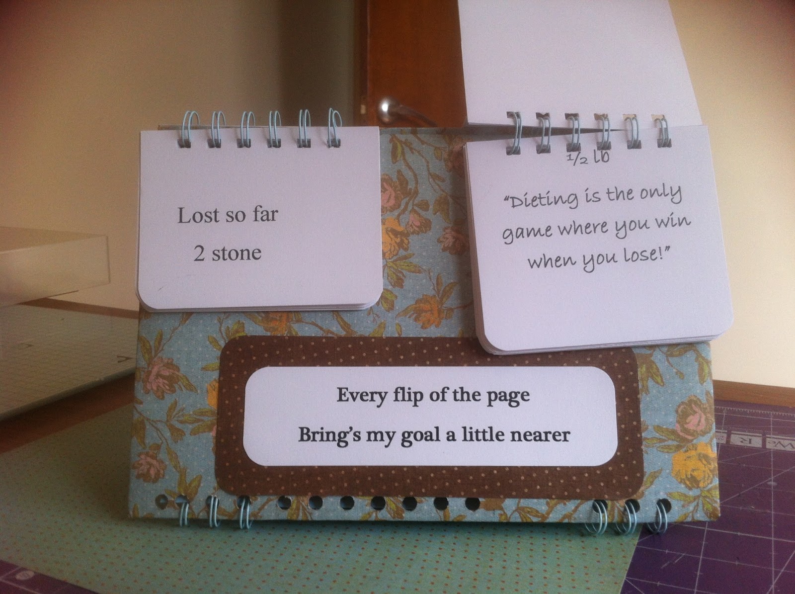 I made this today, I call it a diet flipper. There are 28 flips which you turn for each 1/2 lb off that week and each has a motivational saying on it. There are also a load of flips to mark each 1/2 stone off.